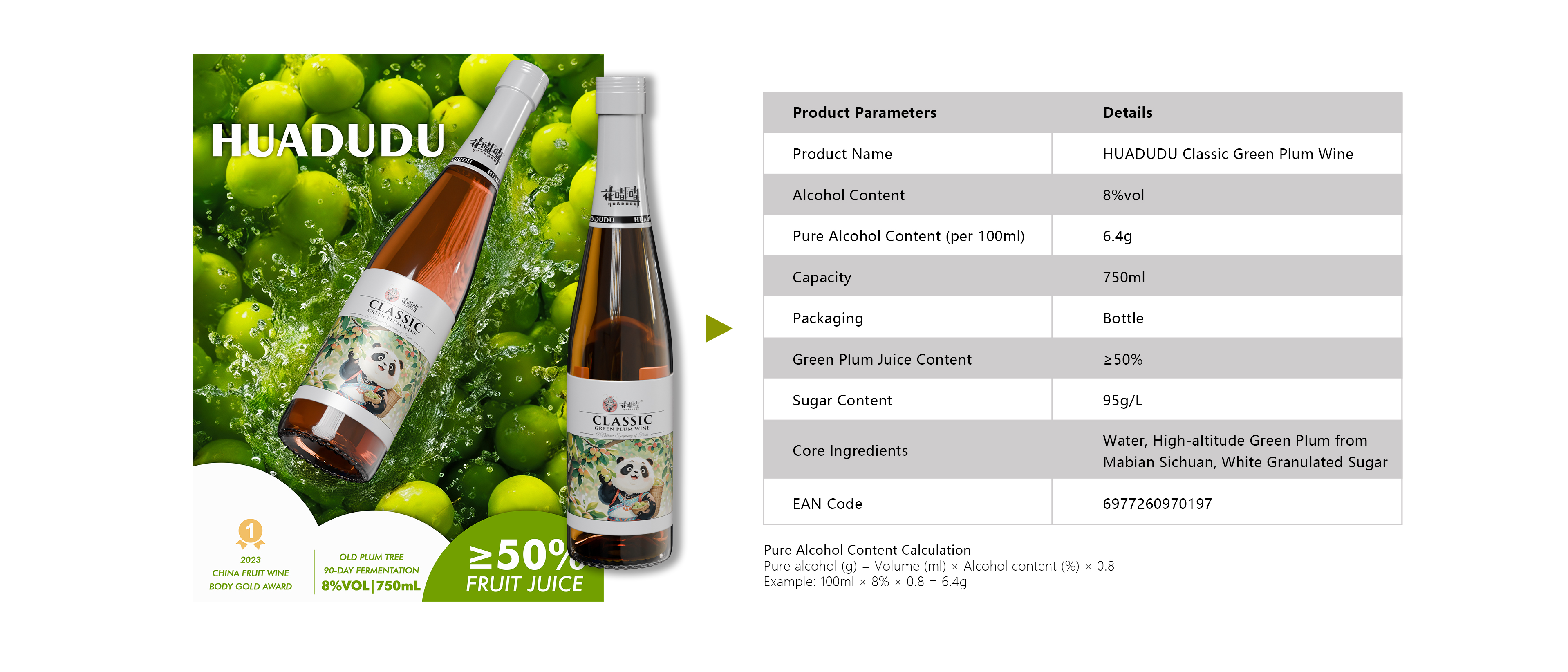 The HUADUDU Perilla Green Plum Wine | Per 100ml | 8% | 85kcal | 0g | 0g | 10g | 0g |